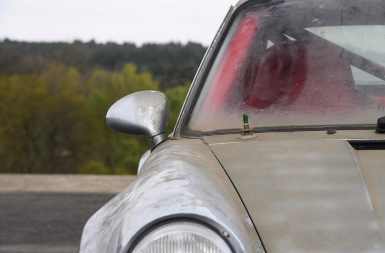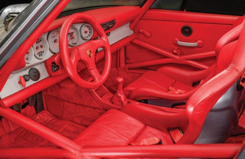 Finished with Polar Silver Metallic paint, it is trimmed in Guards Red leather across the competition seats, headlining, upper and lower dashboard, steering column and steering wheel, door caps, and even the bolt-in roll cage.
